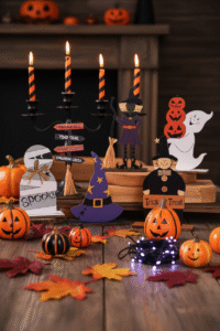 - Layer your decorations: Place the witches at different heights using stands or platforms to create visual interest.